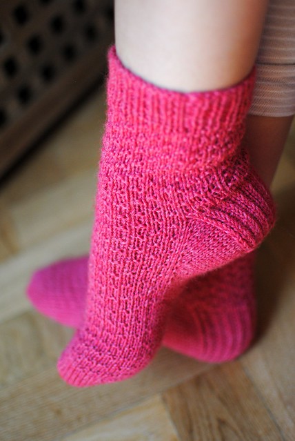 So my fifth pair was again Hermione’s everyday socks in pink for my mum. I got the yarn at La Guerra de los botones and it’s very very soft. My mother uses the same shoe size so things are easy, it’s exactly the same pattern. These came out so soft, so comfy, so wonderful that I’m sad to give them away, but happy because I know my mum will love them.