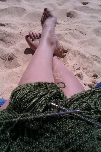 Until two weeks ago, that I went with my mum, my sister and my niece to Algarve, in the South of Portugal. We went there chasing the good weather (this Summer is being also quite bad in Vigo) and also to fulfil my mother’s need for a laying-under-the-sun vacation. A complete week of sun, beach, swimming pool and food. I was starting to panic thinking of all those hours of nothingness so I decided to go for a last minute visit to La Guerra de los Botones and buy some yarn to make two pairs of socks during those slow hours while my mum and my sister were working on their tan. I finally made one and just started the other one, but it really helped me to kill the time (reading is not an option if you need to keep up with your family’s conversations).