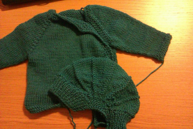I knitted the cardigan and the hat with half the effort of the first time. They looked great even before blocking, they were super soft, looked durable and were machine washable. Now they were perfect!