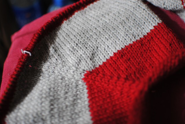 This is what I’m saying since Sunday, after I had to change color and finally I’ve got stripes. Please forgive me for this, but it’s my first knitting colorwork (I’ve done it plenty of times in crochet but never in knitting), and even if compared to other things it’s still pretty lame, it’s colorwork!. I’m still celebrating it and Koen still singing the song of his future cardigan.