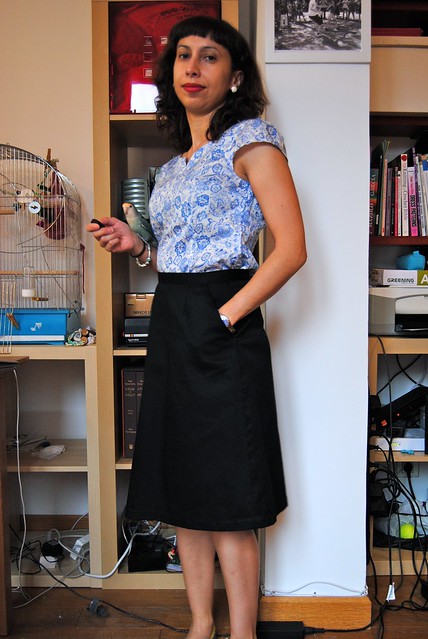 I have used size 4 for the three garments, as usual for Sewaholic patterns. For the Alma blouse I used some fabric that I bought by the kilo in my hometown last Christmas. I think this piece was about €2, so after adding the thread and zipper, the total cost of this blouse is around €5. The fabric is a cotton blend and it’s quite breathable. I wore it during the hot months here and it behaved extraordinarily.It looks good both with and without the belt, and I wore it also with trousers. I think it’s a lovely blouse and very easy to wear. The only adjustments to the pattern was shortening the length by one or two cm but not where it’s usually done. I did it on the chest, since I found the darts a bit too low. I was not very confident about this strange mod at first, but I am pleased with the fit. In hindsight I could have skipped the zipper, since I’m able to put it on without unzipping it. Like for almost all my blouses, I French seamed it, even on the size with the zipper. I love French seams.