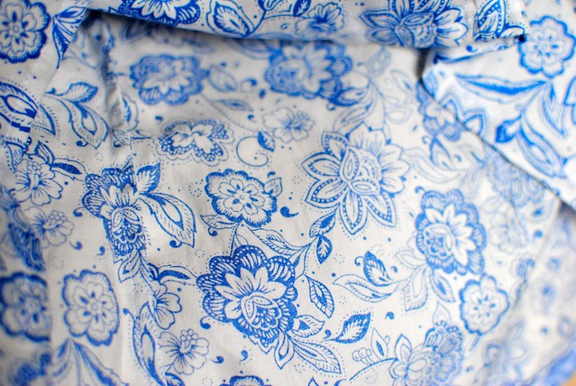 I just added the flowered trim because I thought this blouse was lacking something. I am not sure of the purple tone of the flowers, but as I said, this is just a wearable muslin. The fabric is not great for this, since it feels stiff and boxy, but at least it has helped me to wrap my head around this design. This is again size 4 with no mods. Seeing the pictures makes me think that I could have gotten away with a size 2. Also, if I make this again, I would make exactly the same mod I did for my Cambie dress, and it’s cutting off one cm from the shoulders. Thinking of it, it’s a bit similar to the mod I did on the Alma blouse. It seems I’m smaller on the shoulders than how the Seaholic designs are meant to be.