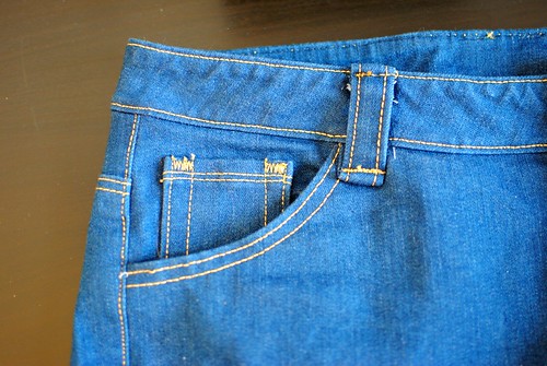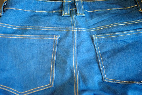 I think your jeans look great! I’m impressed that you actually made jeans! 🙂 I have trouble even hemming jeans on my machine because of the thickness at the seams. My mom (who once worked at an alterations shop) said that they would hand-walk the machines over the seams. My last attempt was recently to “magic hem” my jeans on my new serger and it knocked my knife out of alignment. I have officially given up on denim. 🙂