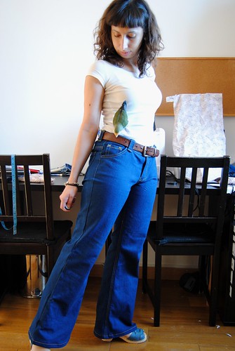 The jeans look great, and your stitching so straight! They fit pretty well for no modifications, too. Hopefully you will get the energy to make another pair to perfect the fit. I second the hammer use. I got a small piece of wood and used that over the denim to prevent the hammer from marking the fabric. I pounded quite a lot on each thick section to get it nice and soft. It really helped on the upper back pocket corners and the belt loops. It is definitely still hard to sew through so many layers, though.