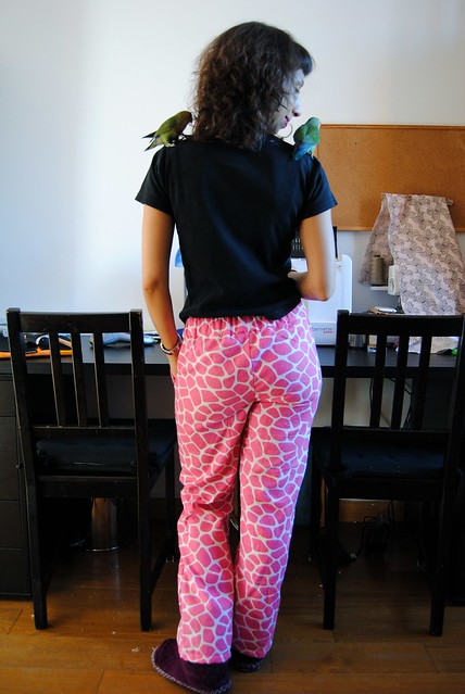 It has pockets, something I missed in my other PJ’s, they are easy and quick to sew and they are quite flattering taking into account that they are just pajamas. I just made the bottoms since it is what I really need to work from home, sleep, watch TV shows and play with the birds.