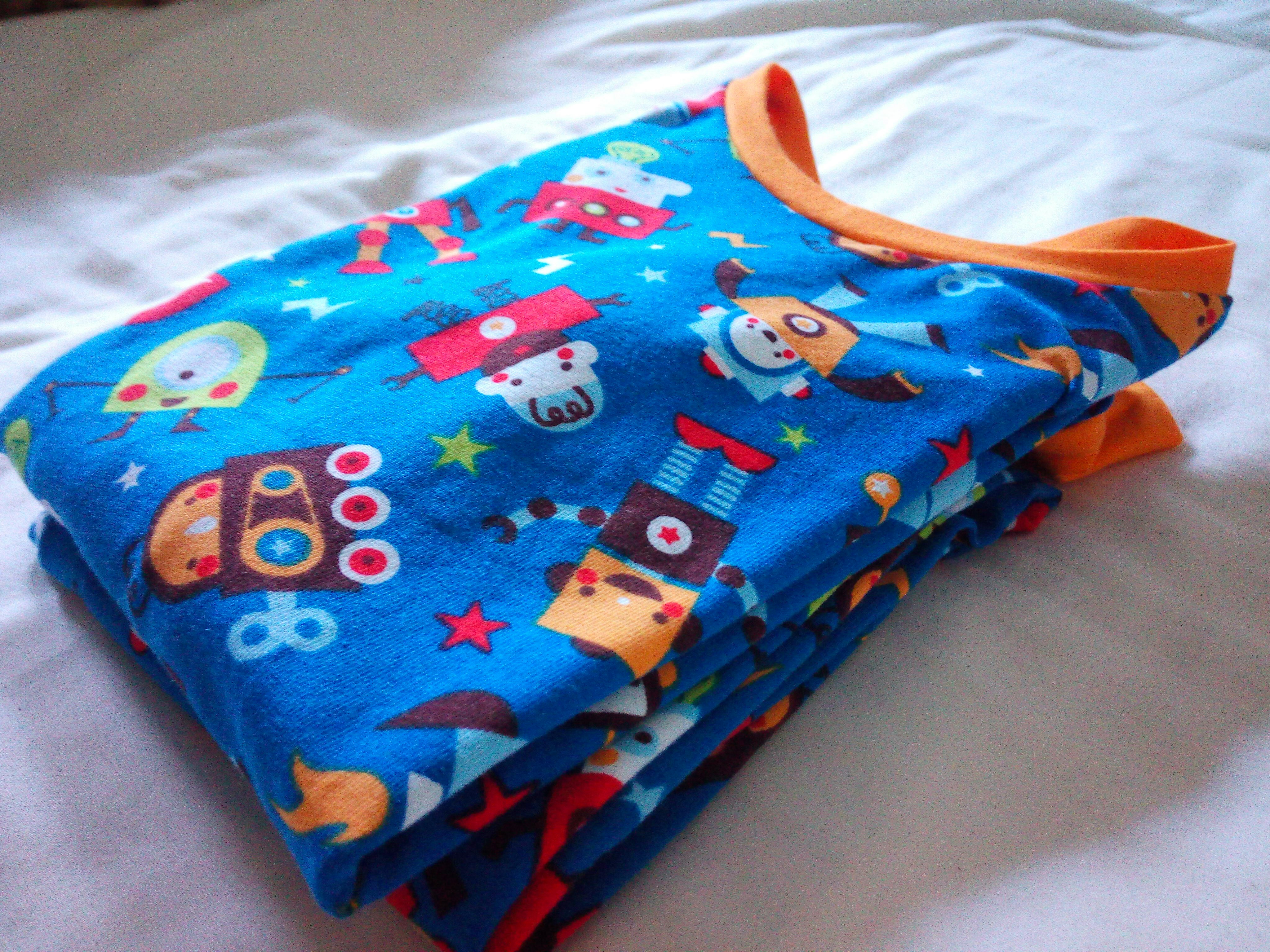 My niece Paula has her birthday in mid December, so I always make something and give it to her during my Christmas visit. Sweaters and hoodies have been a real success, but this year I was in a rush due to our forthcoming move. I was about to pack my machines and had no time to struggle with my rebel sewing machine, so I went for the Peekaboo Alex & Anna Winter Pajamas, and I used some organic cotton that I had in my stash for any possible baby/kid present.