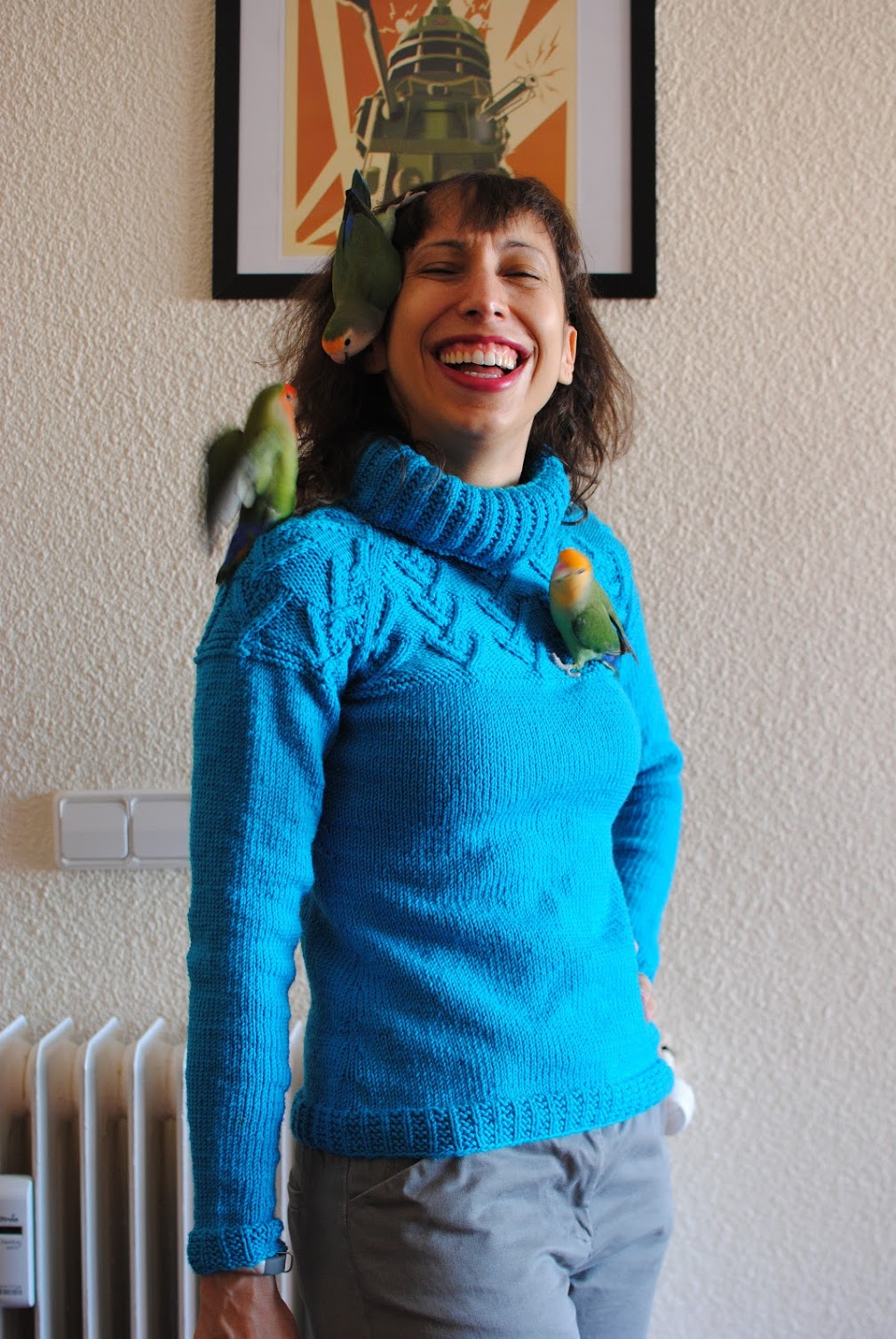 I used a gorgeous teal tone from Garnstudio DROPS Merino Extra Fine. As I needed to substitute the originally recommended yarn, it took me some adjustments to get the right gauge. This is a problem I often encounter, so I recommend knitting a swatch to make sure the sweater will fit. Mine has a little bit more negative ease than what the pattern calls for but I actually prefer it my sweaters like this.
